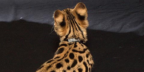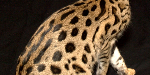 The spotted Savannah pattern is bold, dark-brown to black with round, oval and elongated spots. A series of parallel stripes, from the back of the head to just over the shoulder blades, fan out slightly over the back and the spotting pattern follows the line of the stripes from the shoulders continuing the length of the body. Smaller spots will be found on the legs and feet as well as on the face. The black Savannah should be solid black. Black spotting on a black background is the ideal. The smoke pattern will conform to the spotted Savannah’s standard.