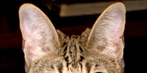 Ears are large and high on the head; wide with a deep base and rounded tips. The inner base of the ears are quite close at the top of the head. There are ear furnishings present that rarely extend beyond the edge of the ear. Light colored, horizontal bars (i.e., occelli) on the back of the ear are desirable.
